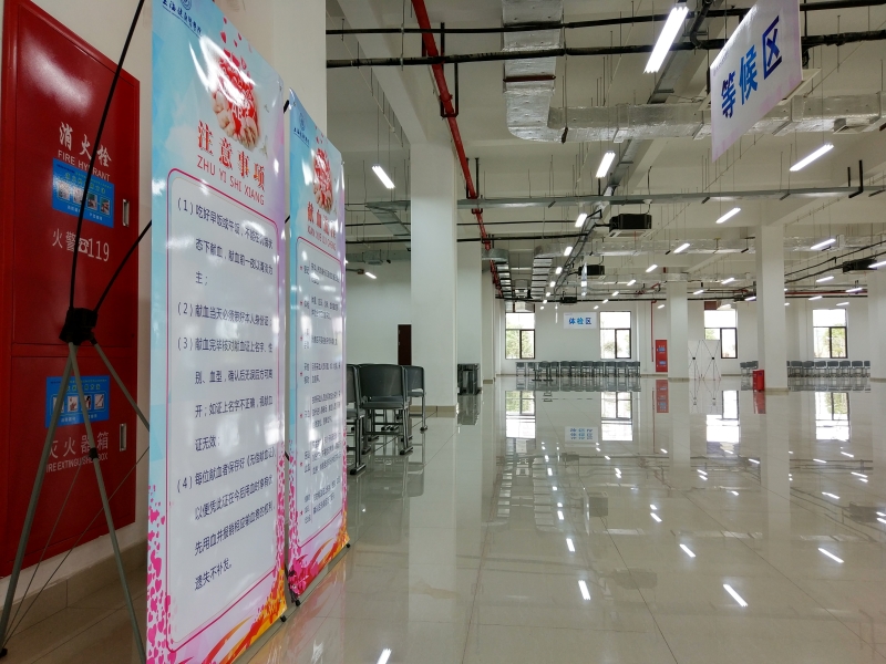 本次献血工作准备充分,后勤服务中心专门召开了献血工作专题会议,明确职责,做好献血活动的宣传、动员、服务保障。为了让献血现场井然有序,根据工作流程,后勤服务中心分区域制作了大幅导引牌,并周密落实安排了献血当天所需的各项保障措施,学校各大食堂专门开设了献血营养专窗为献血的同学们服务。献血第一天恰逢雨天,物业管理人员特地在场馆外通道铺上了防滑垫,并配备了现场保洁人员随时拖地,避免学生滑倒受伤。同学们和血站的工作人员对献血现场的保障服务非常满意,献血当天的秩序也很井然。